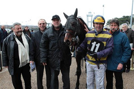 remporte le Prix d'Urt, mercredi à Pau. Son jockey Christophe Pieux